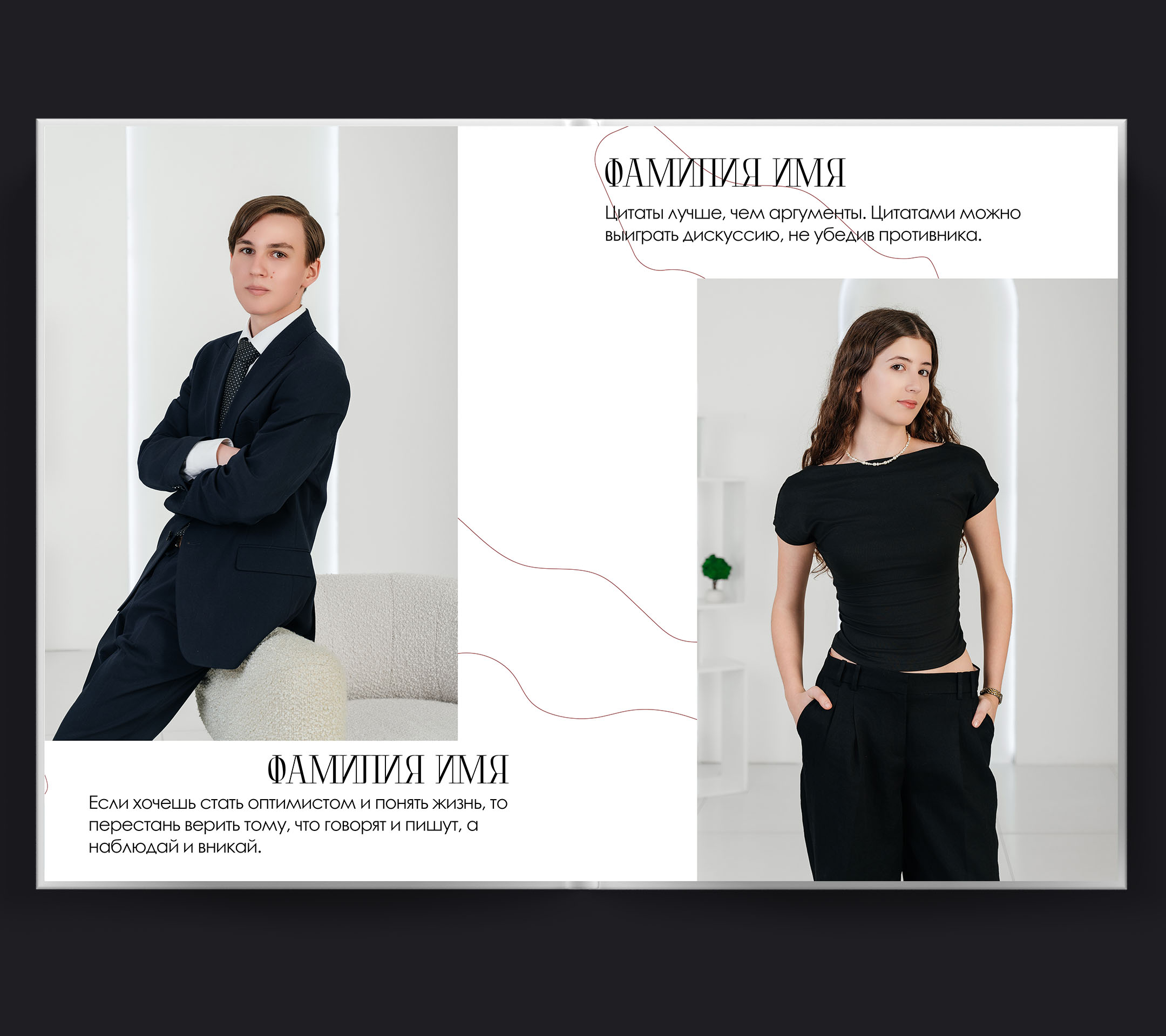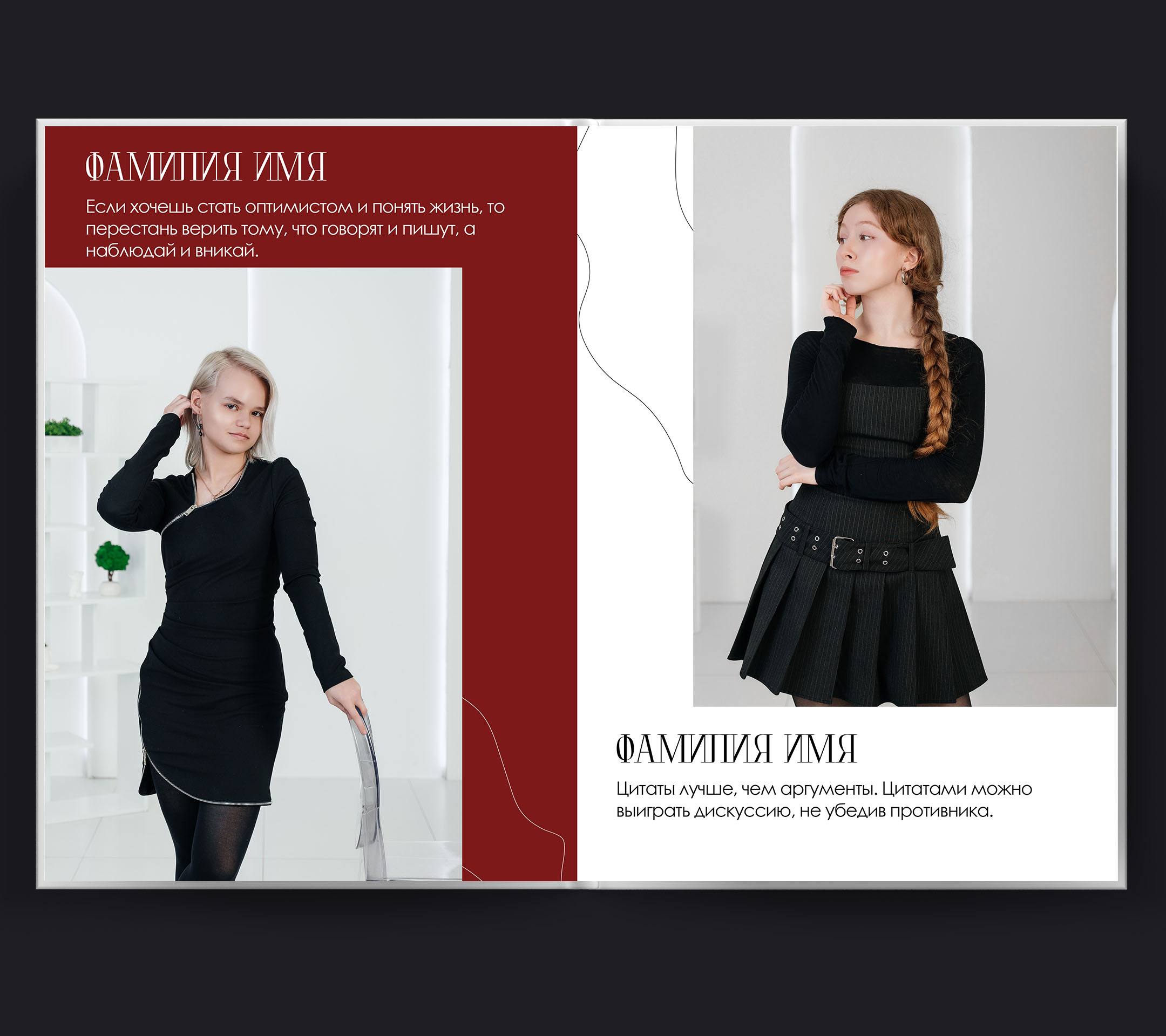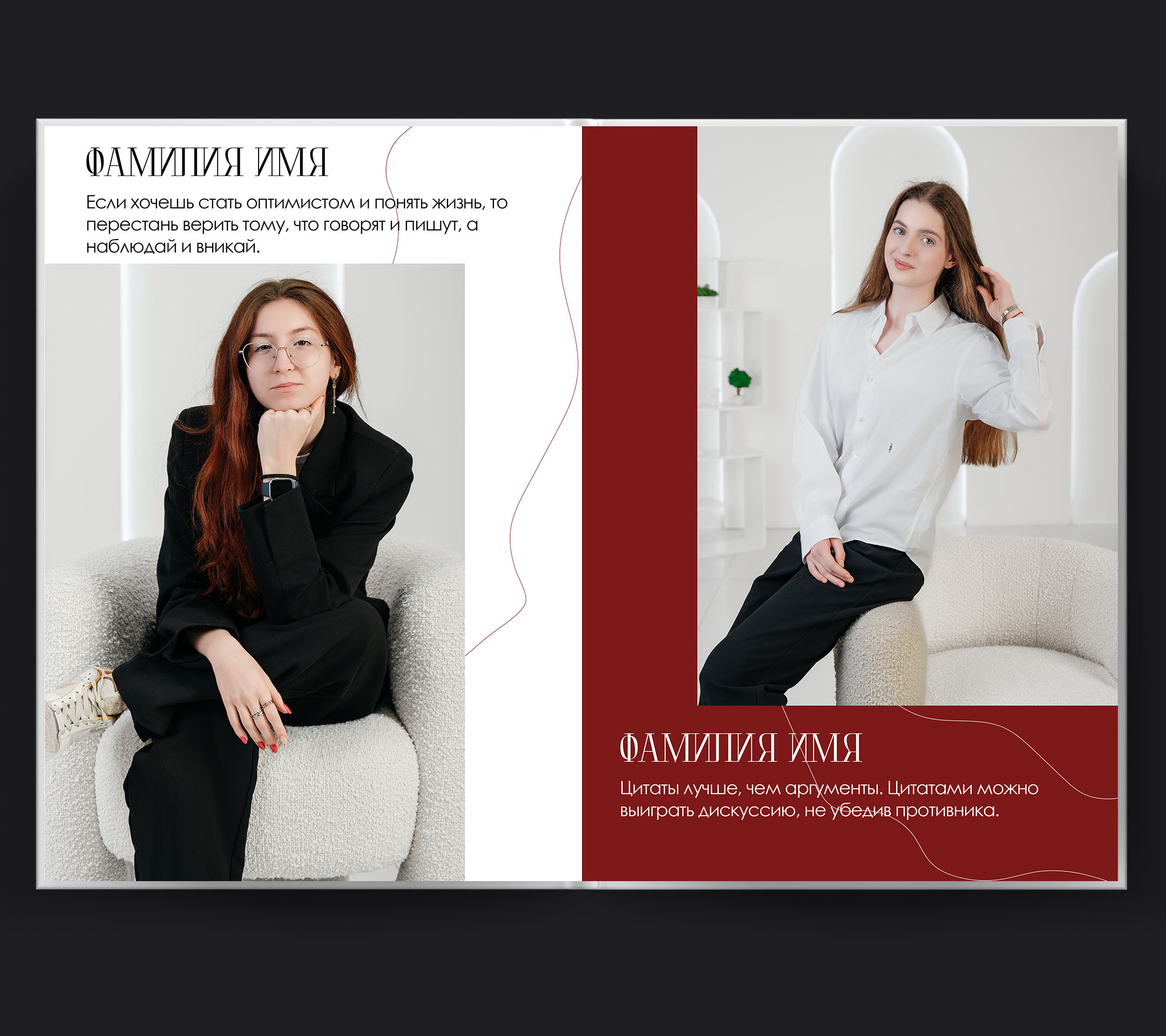 Персональные страницы внутри альбомаИндивидуальный первый разворот