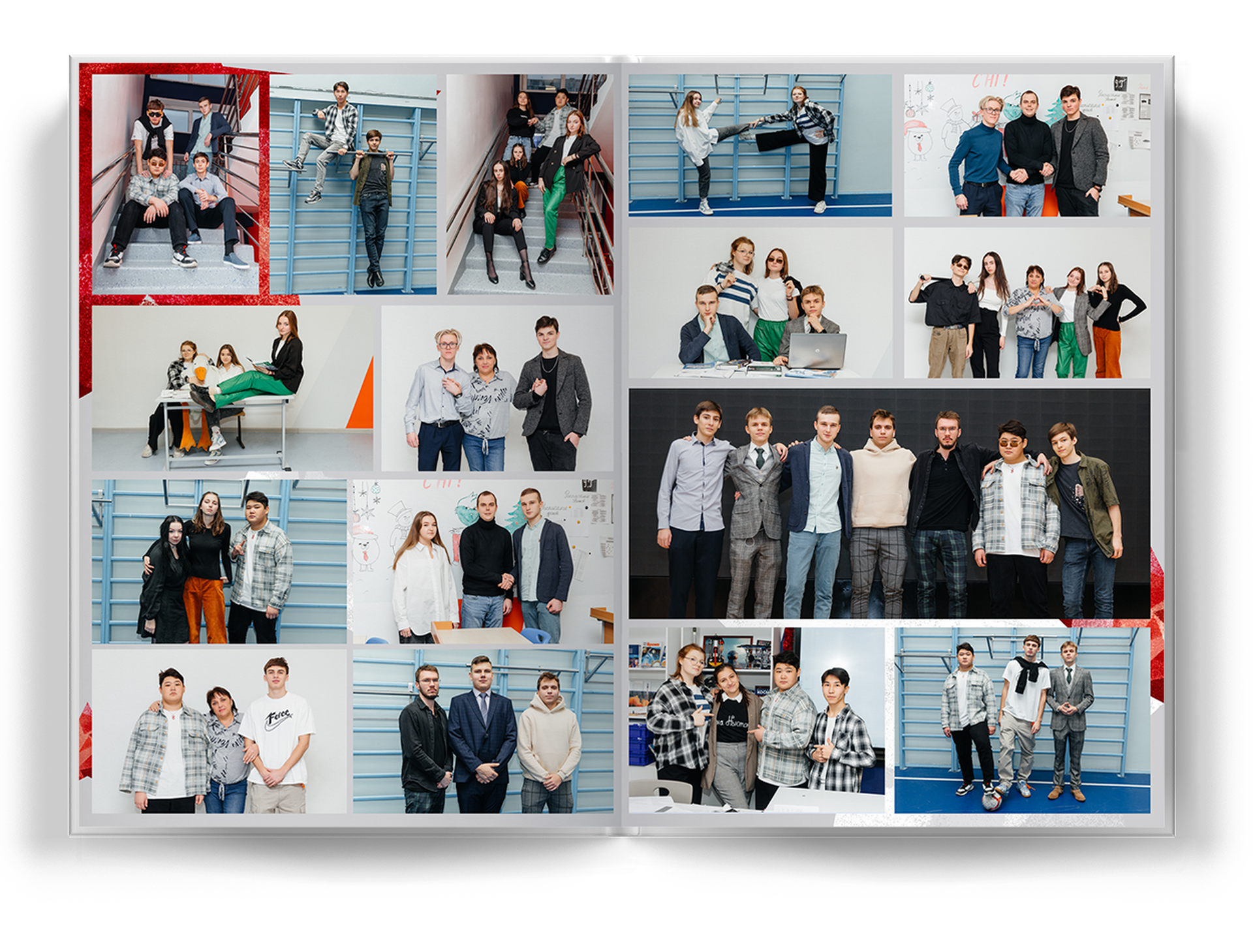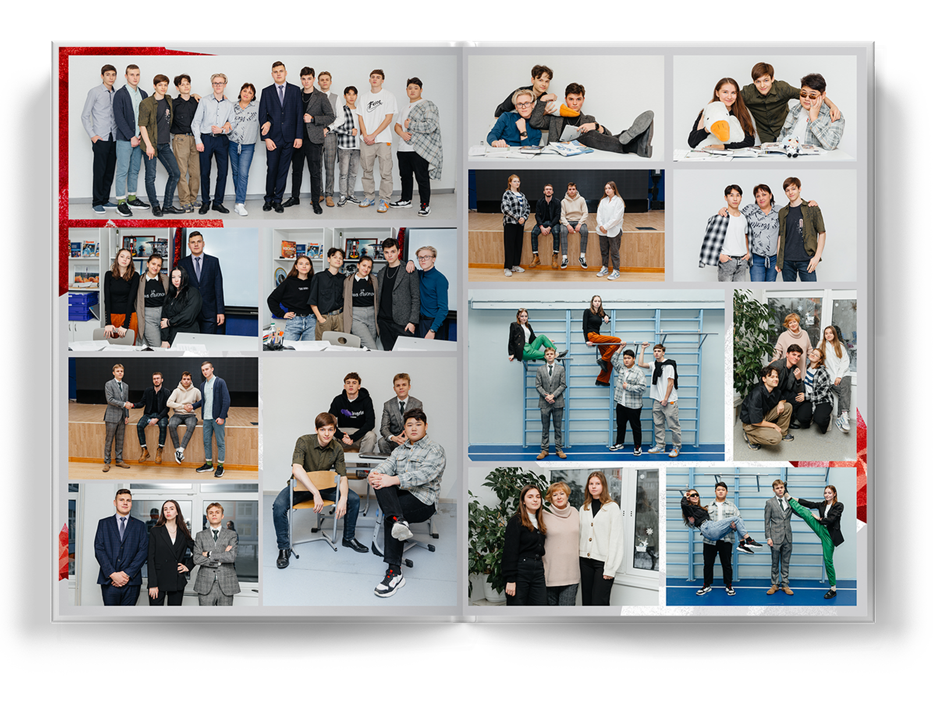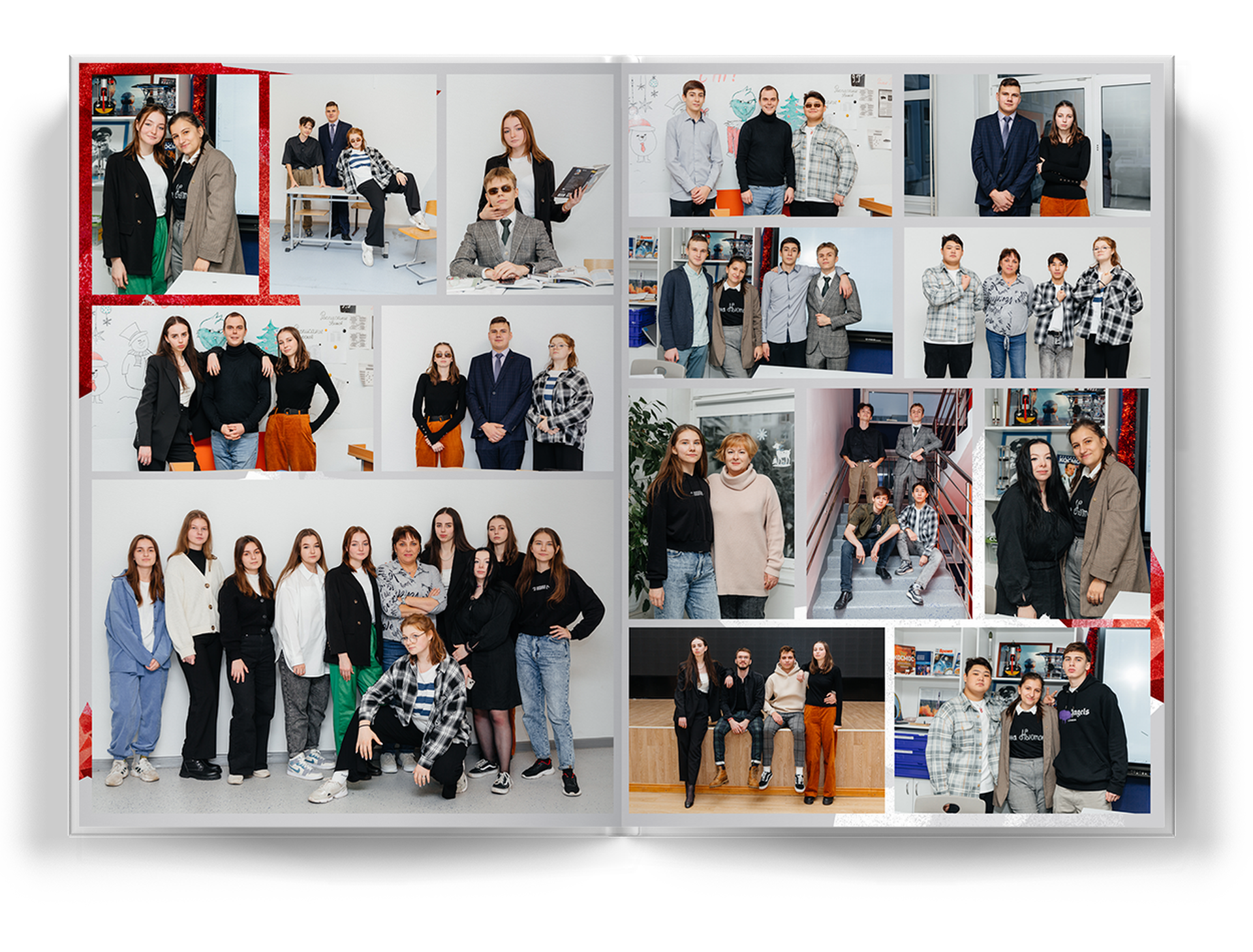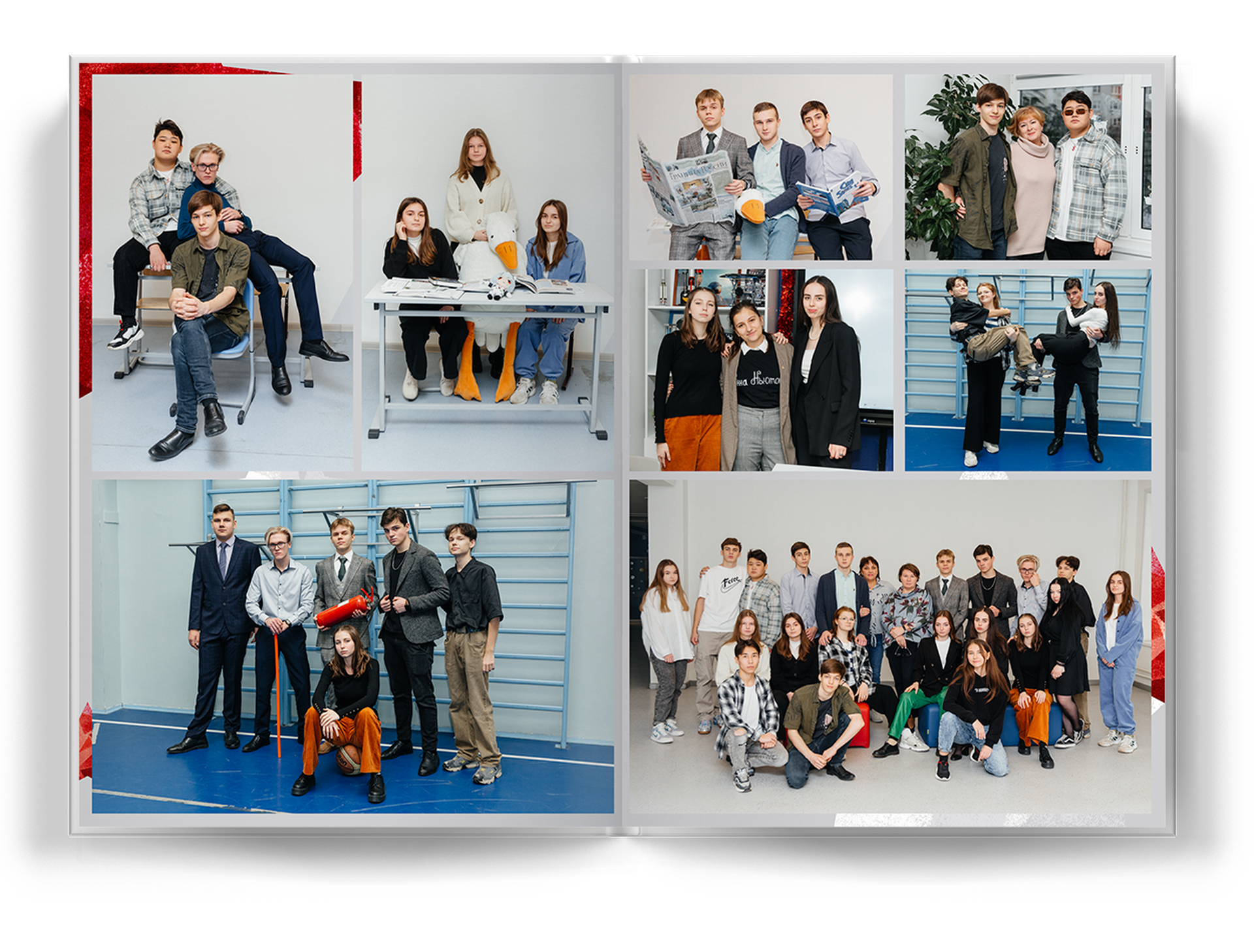 общее фото на весь разворот;