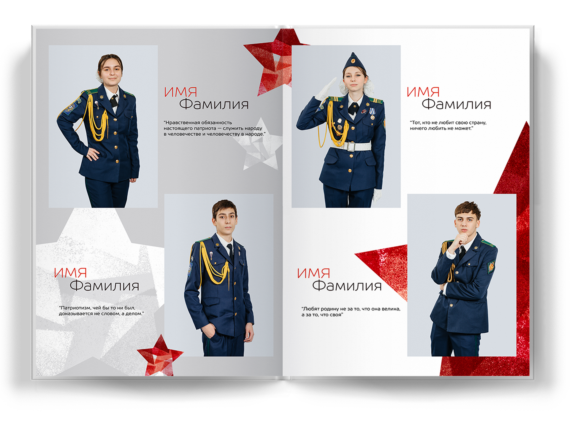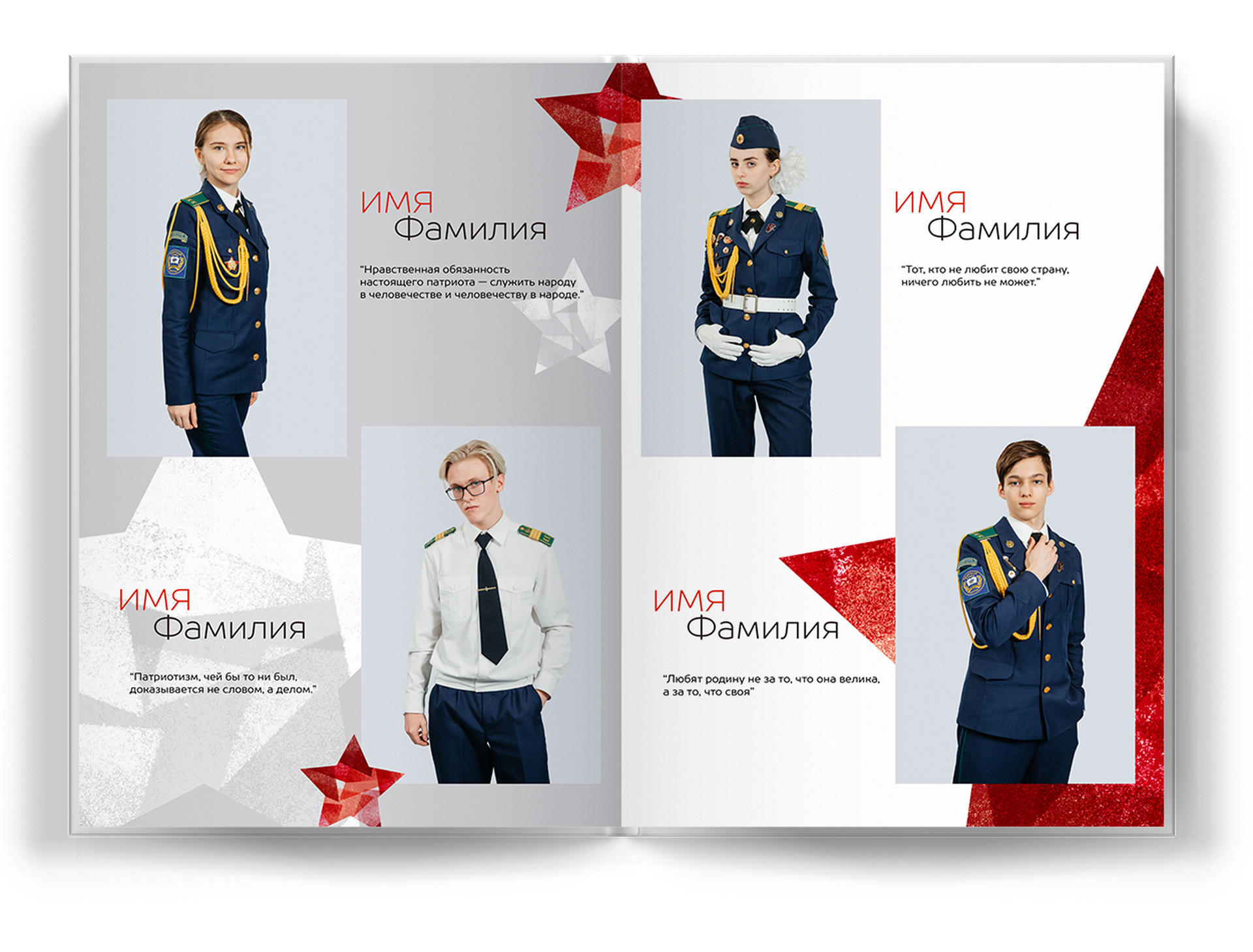 4 выпускника на разворот альбома;