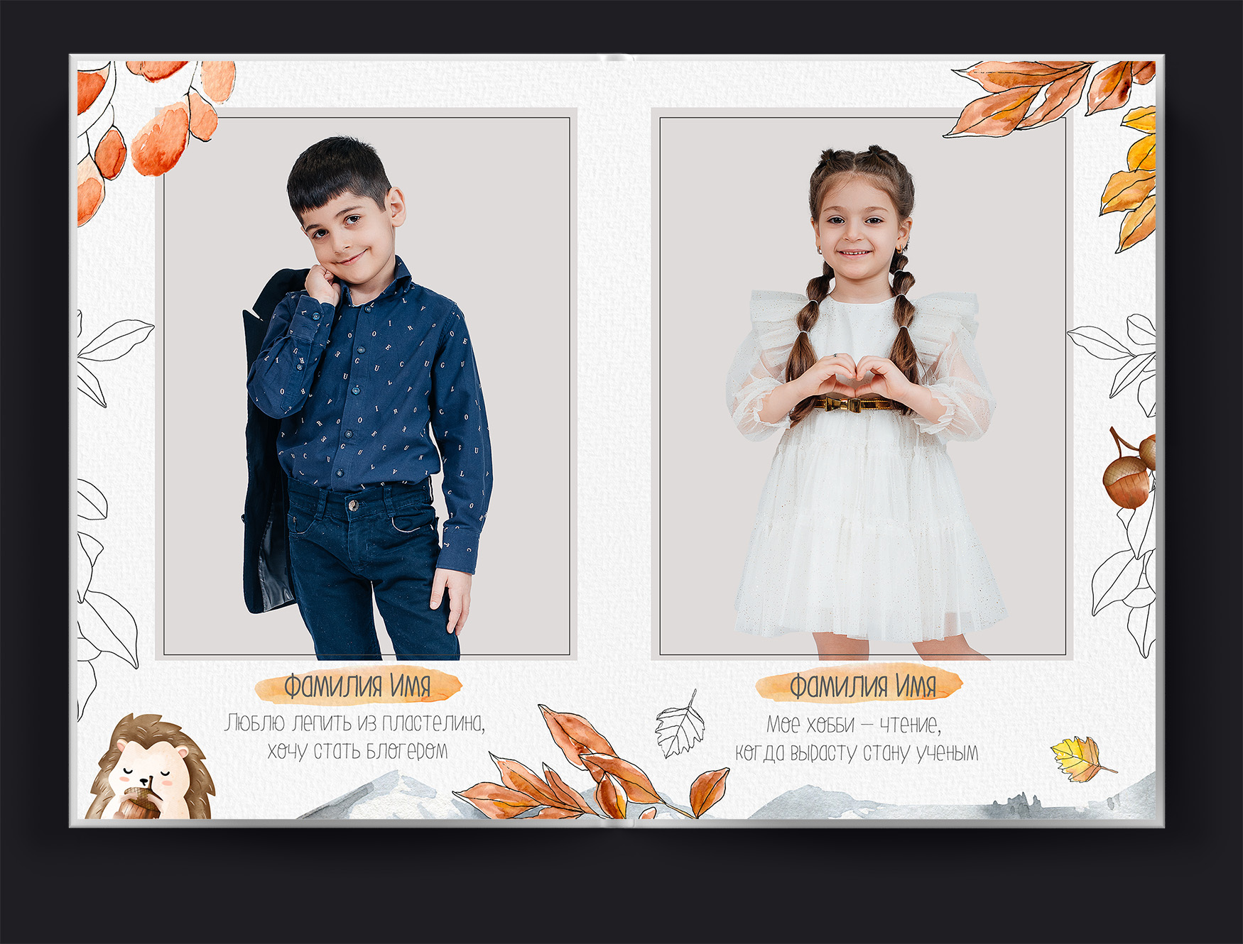 | Персональные страницы внутри альбома | Индивидуальный первый разворот |