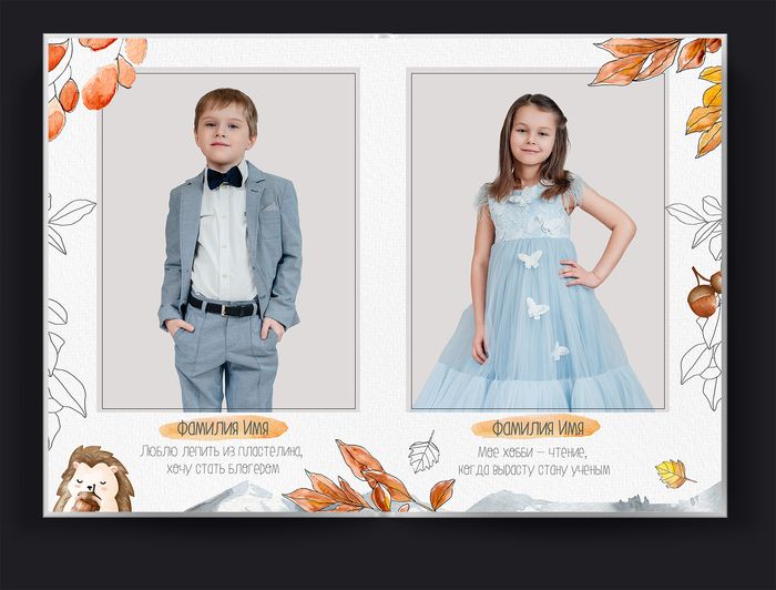 Фотоальбом "Краски осени" для выпускников детского сада представляет собой уникальное сочетание воспоминаний и художественного оформления, которое порадует как детей, так и их родителей. Выполненный в акварельных оттенках, альбом переносит нас в уютную атмосферу осени с её теплой гаммой золотистых и оранжевых цветов.