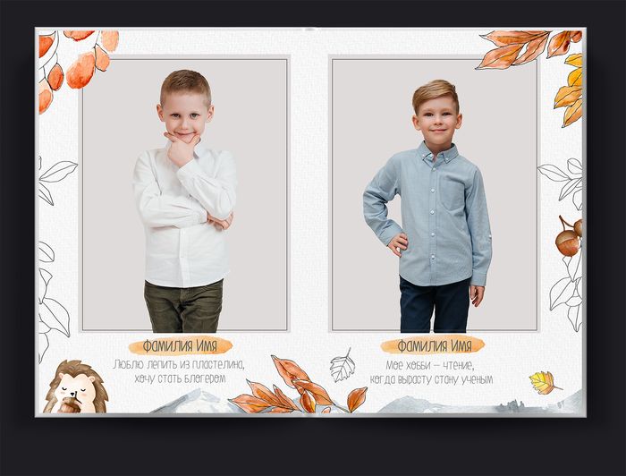 | Наполнение альбома | 2 человека на разворот (т.е 1 человек на страницу) |